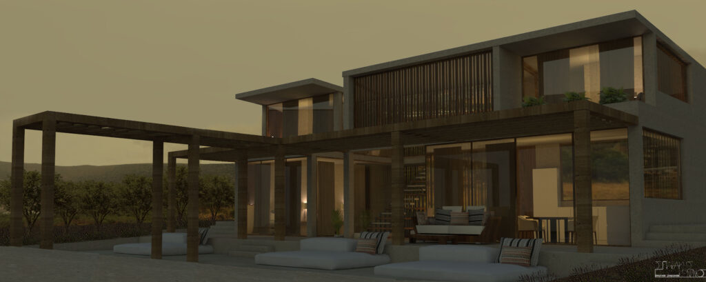 Τρισδιάστατες απεικονίσεις του project εξοχική κατοικία 2 στα Φαλάσαρνα.